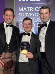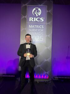 The prestigious accolade was collected at the recent RICS Matrics Awards night held at The Grand Connaught Rooms in London’s West End. RICS Matrics is the early career community of the Royal Institute of Chartered Surveyors (RICS) for students, trainees and newly qualified professionals. The ceremony was attended by surveyors from across the UK with categories covering areas such as commercial property, building surveying, residential surveying and construction surveying.
