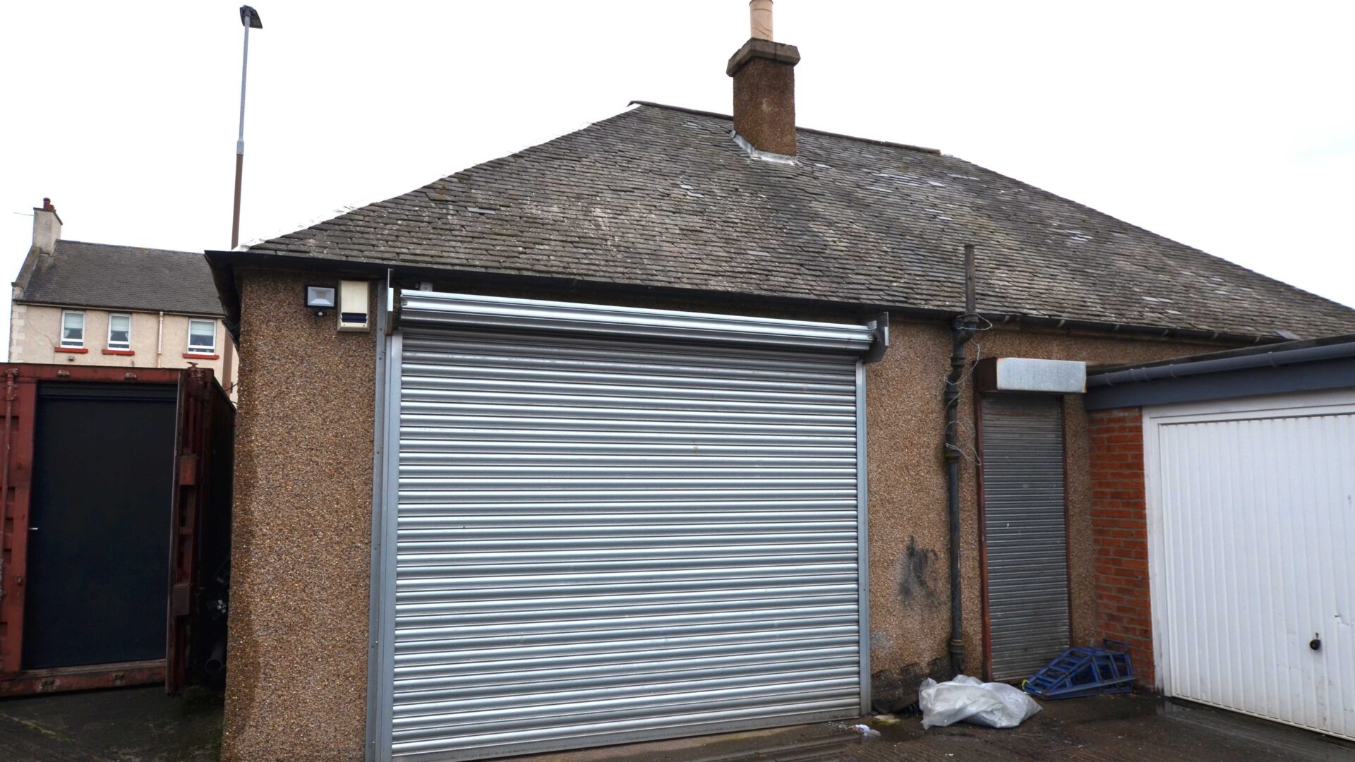 A side pend provides vehicle access to the rear of the workshop where a 2.6m wide roller shutter provides direct access to the workshop.