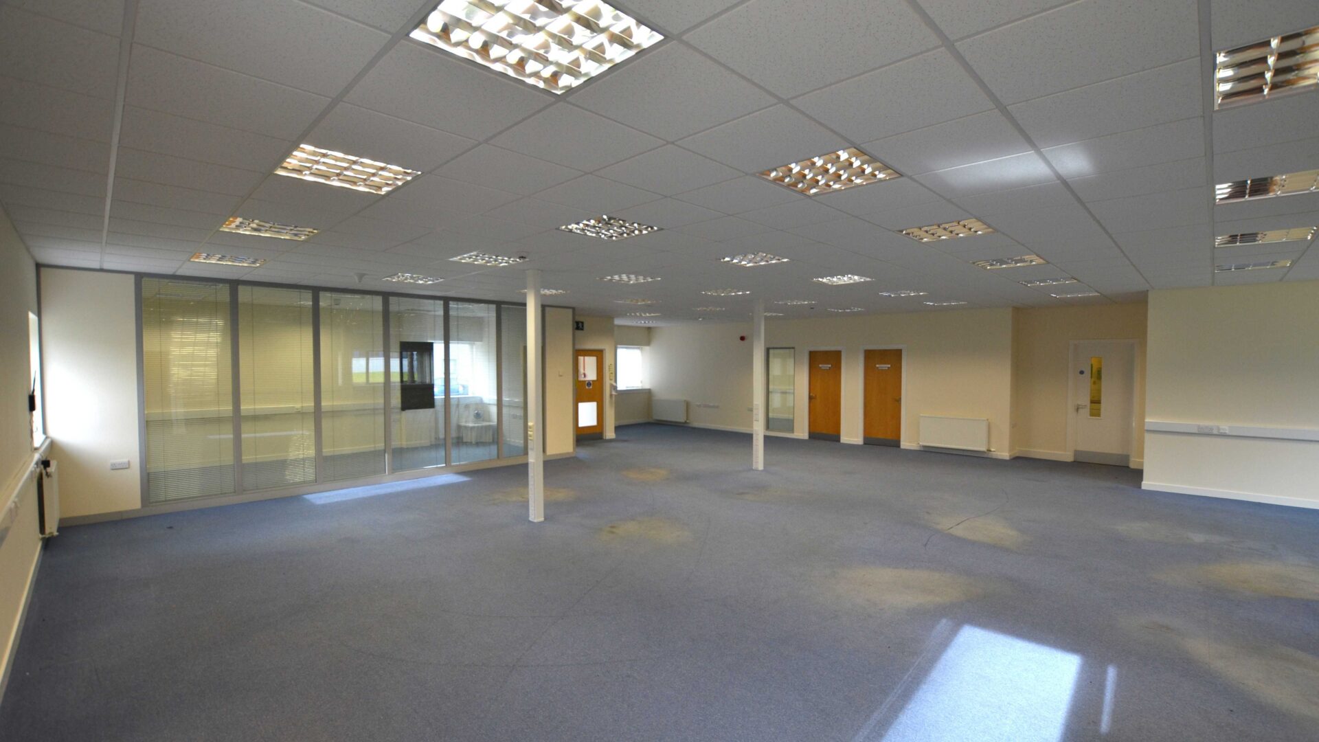 Arranged over ground floor the premises provide modern, open plan office space with LED lighting and data trunking. There are three partitioned rooms which would be suitable for private offices or, perhaps, meeting space.